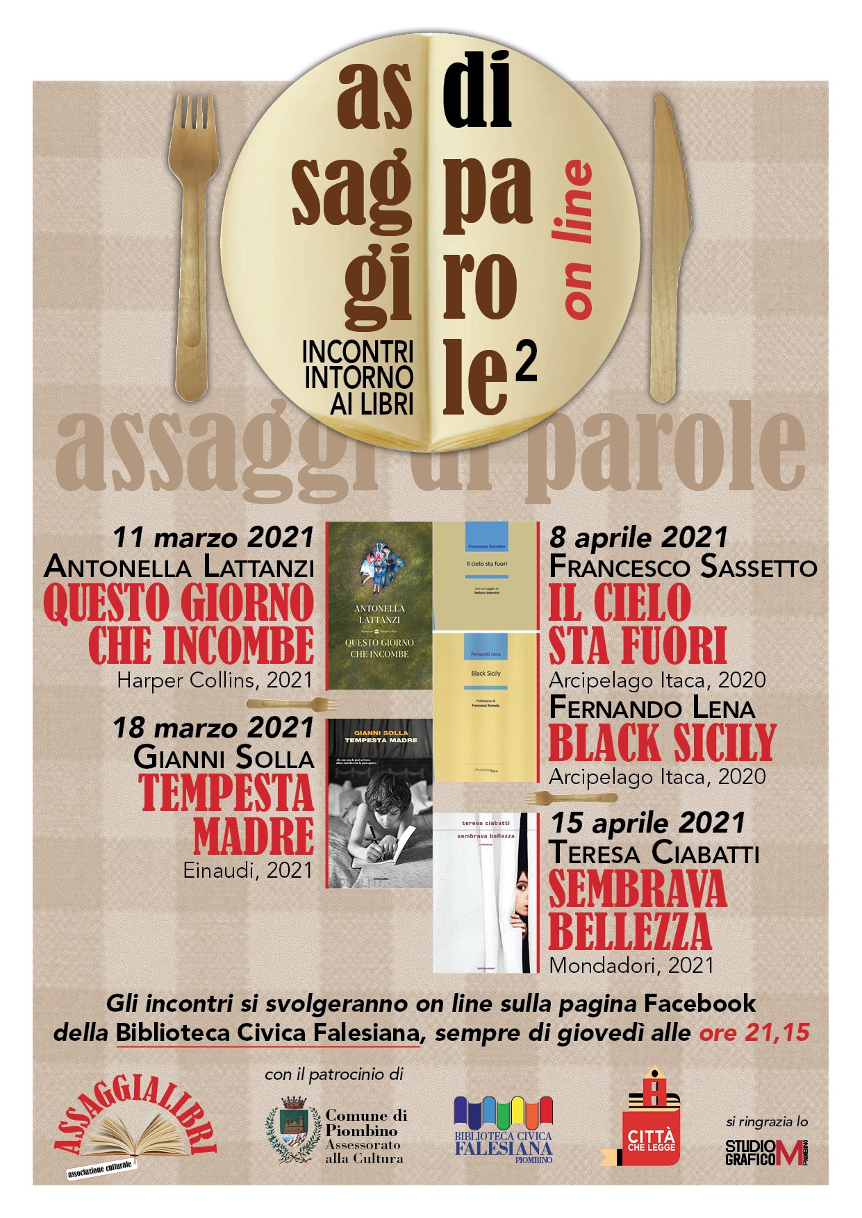 Per i mesi di marzo e aprile 2021 sono previsti quattro nuovi incontri online: giovedì 11 marzo Antonella Lattanzi con il suo "Questo giorno che incombe" (Harper Collins, 2021); giovedì 18 marzo "Tempesta Madre" di Gianni Solla (Einaudi, 2021), giovedì 8 aprile "Black Sicily" di Fernando Lena e "Il cielo sta fuori" di Francesco Sassetto (entrambi editi da Arcipelago Itaca nel 2020), chiuderà il ciclo di appuntamenti giovedì Teresa Ciabatti con il suo "Sembrava bellezza" (Mondadori, 2021) previsto giovedì 15 aprile.