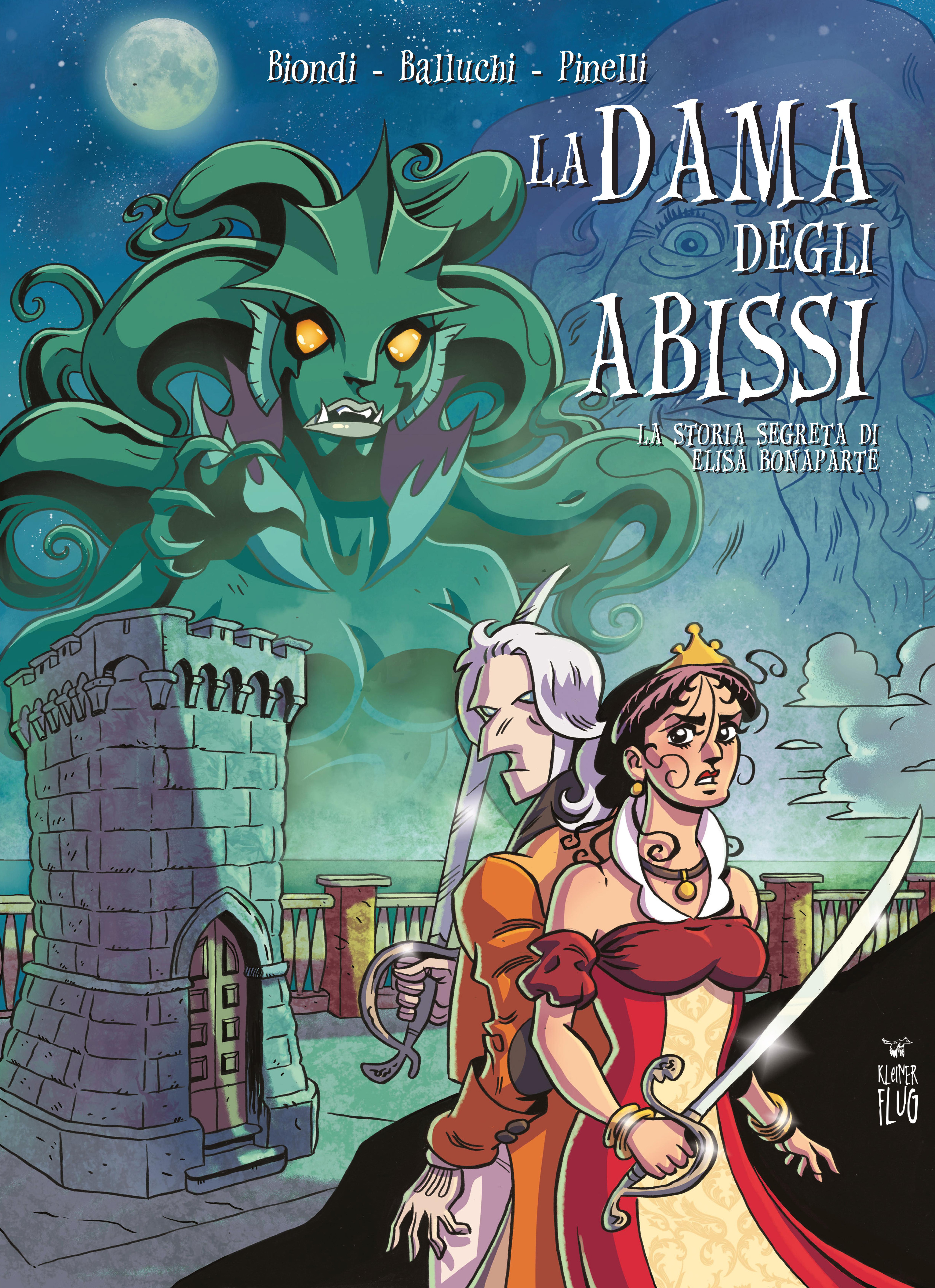 Scritta da Francesco Biondi (all'esordio come sceneggiatore), disegnata da Alessandro Balluchi (presidente della fiera Labronicon di Livorno e già autore per Kleiner Flug di Donatello) e colorata da Luca Pinelli (autore Kleiner Flug per Santa Maria del Popolo e Horatio Nelson),"La dama degli abissi" è ambientata nel 1805 a Piombino, durante il dominio della Principessa Elisa Bonaparte, da poco incaricata dal fratello Napoleone di governare la città.