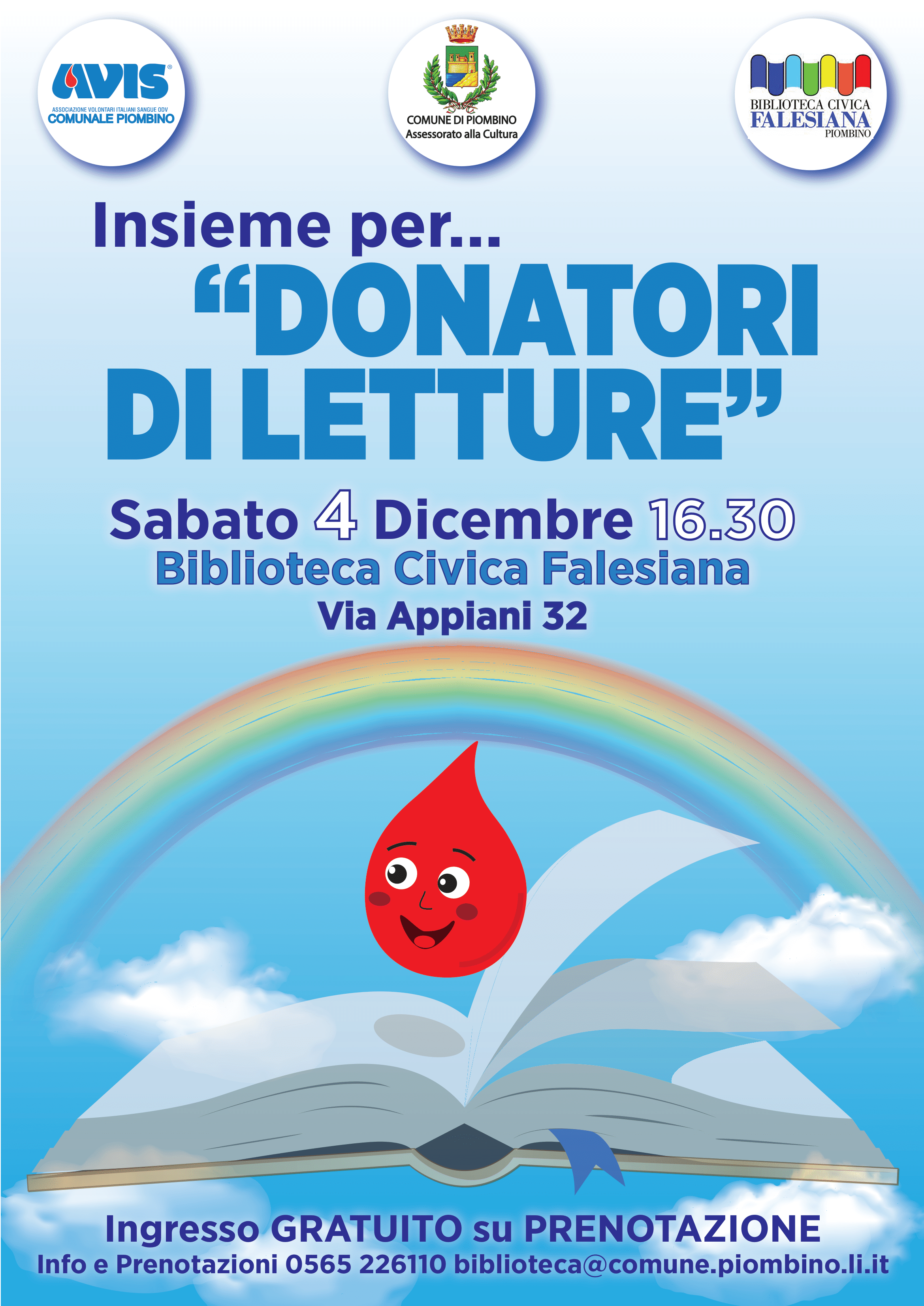 Un pomeriggio di letture, attività e giochi per sensibilizzare i bambini sull'importanza del donare: sabato 4 dicembre alle 16.30 alla Biblioteca Civica Falesiana di via Appiani 32 si svolgerà l’evento “Donatori di letture”, organizzato in collaborazione dai volontari di Avis comunale e dai lettori volontari della biblioteca.