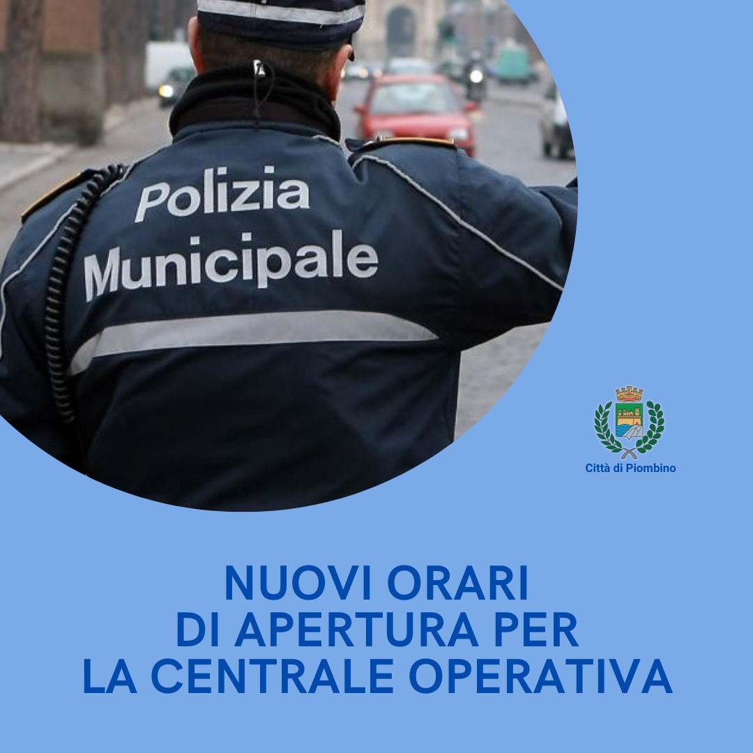 Dal 22 luglio 2024 la Centrale Operativa della Polizia Municipale osserverà nuovi orari di apertura al pubblico: sarà aperta dal lunedì al sabato dalle ore 10 alle ore 12 e dalle ore 15 alle ore 17.