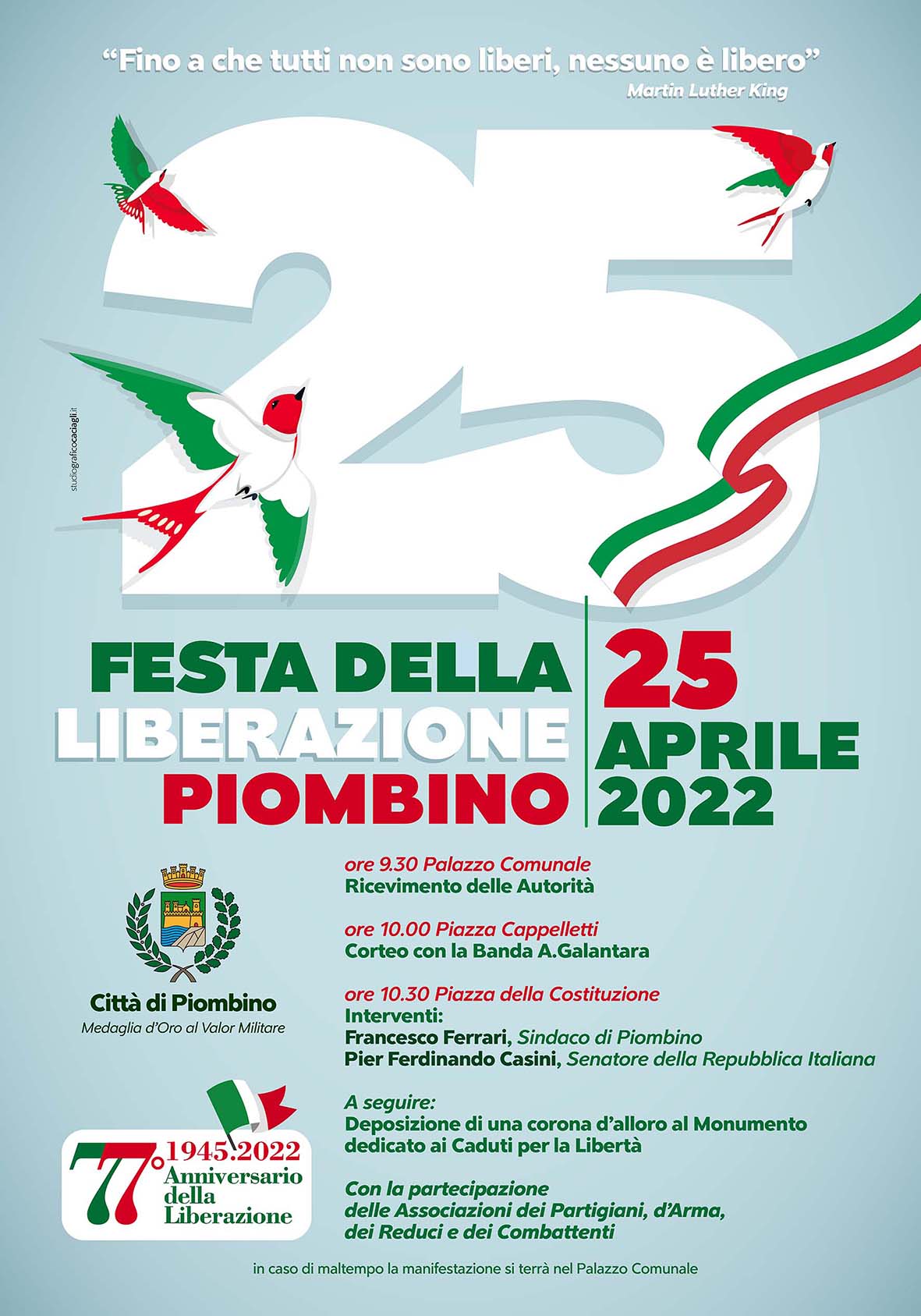 Piombino torna a celebrare la Festa della Liberazione nei modi in cui era conosciuta prima della pandemia e con un programma che vedrà come ospite il senatore della Repubblica Pier Ferdinando Casini. La giornata inizierà con il ricevimento delle autorità davanti al Palazzo comunale alle 9.30, alle 10 è prevista la partenza del tradizionale corteo da piazza Cappelletti accompagnati dalla Banda Galantara fino ad arrivare, alle 10.30, in piazza della Costituzione per la cerimonia ufficiale durante la quale interverranno il sindaco Francesco Ferrari e l'onorevole Pier Ferdinando Casini.