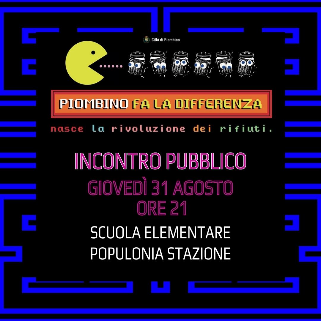 Procede il percorso di informazione e sensibilizzazione sul nuovo sistema di raccolta di rifiuti urbani. Domani, giovedì 31 agosto, alle 21 nella sede della scuola elementare di Populonia stazione si terrà il primo incontro in programma nella frazione per illustrare ai cittadini le innovazioni e le modalità corrette di conferimento. Parteciperanno il sindaco Francesco Ferrari, l’assessore all’Ambiente Carla Bezzini e i tecnici del Comune.
