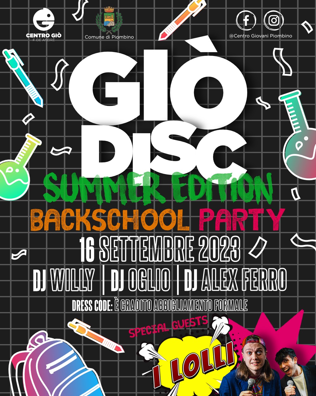 Sabato 16 settembre ultimo appuntamento con Giò Disc – Summer edition, il cartellone di serate tutte da ballare per l’estate 2023 organizzate dal Comune di Piombino al Centro Giovani.