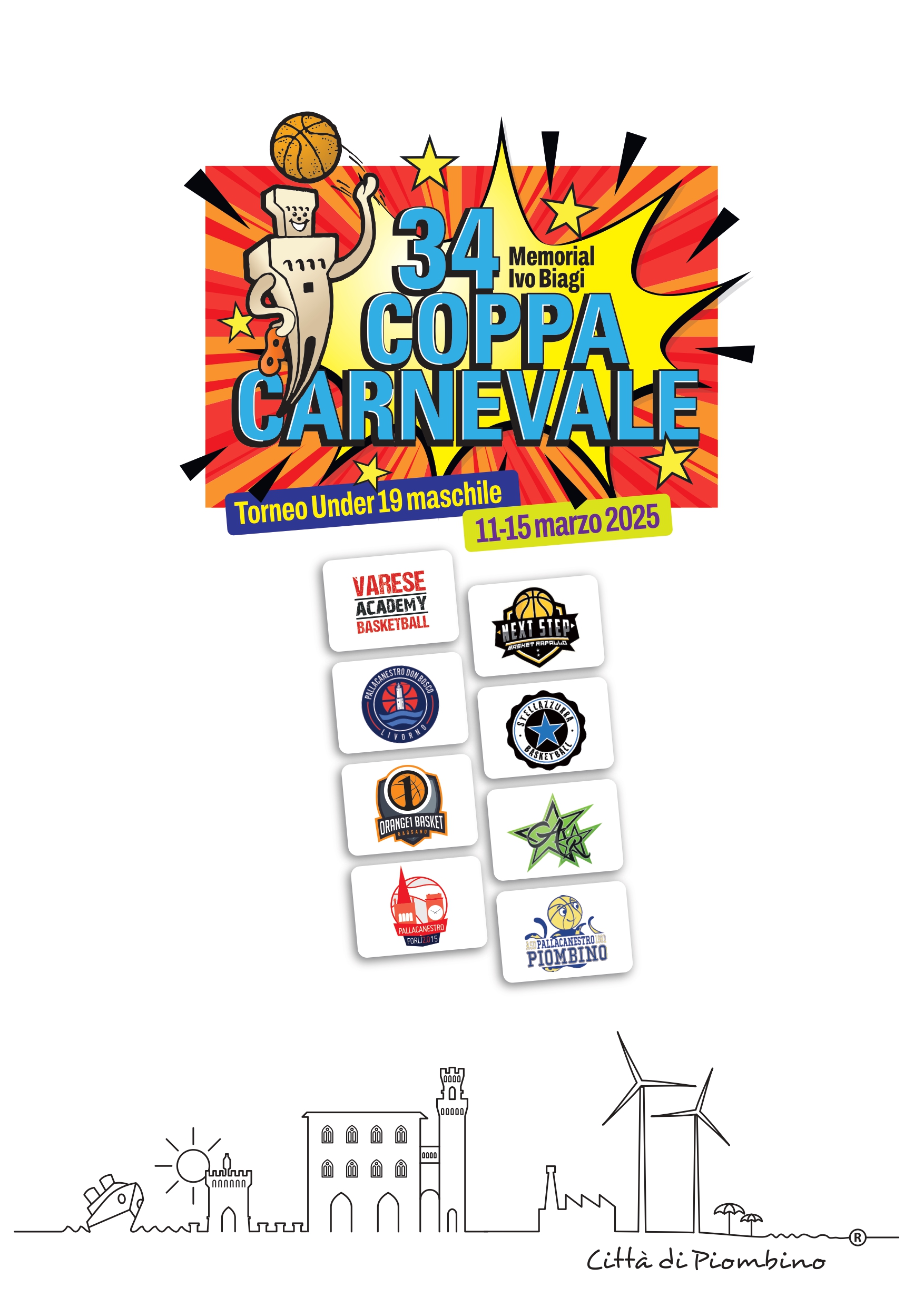 Al via domani la 34esima edizione della storica Coppa Carnevale, organizzata dall’Asd Pallacanestro Piombino con la collaborazione del Comune di Piombino e dell’associazione Pro Loco, che si svolgerà interamente sul parquet del Palatenda tra martedì 11 e sabato 15 marzo.
