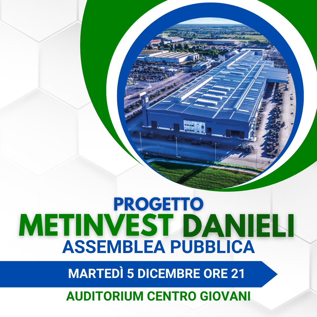 Martedì 5 dicembre alle 21 nell’auditorium del Centro giovani, si terrà un’assemblea pubblica con i tecnici delle aziende per approfondire il progetto di Metinvest e Danieli per l’impianto siderurgico.