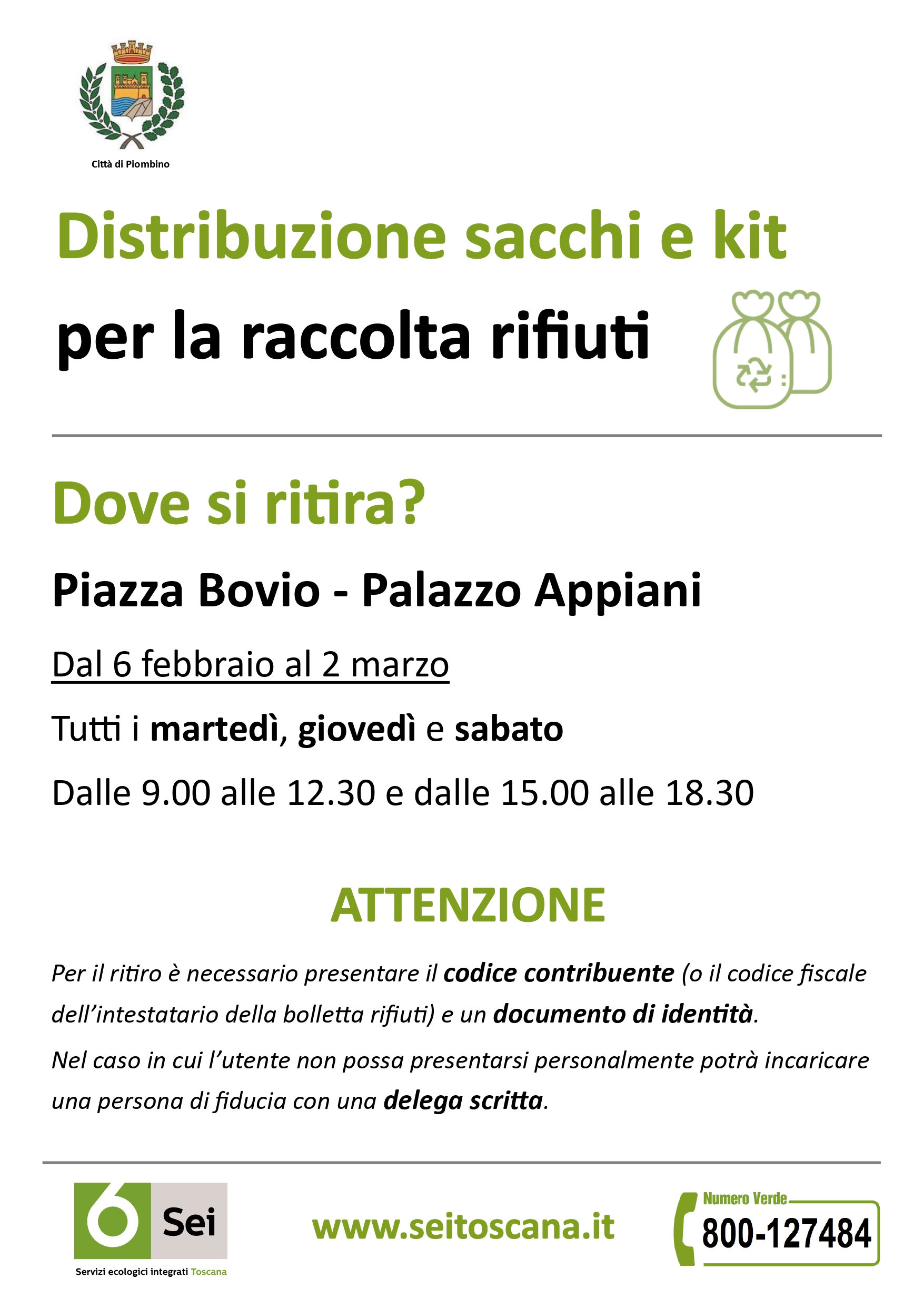 Nelle prossime settimane proseguirà la distribuzione dei sacchi e kit.