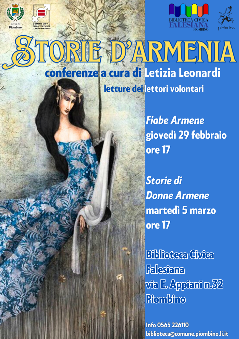 L’evento, a ridosso della Festa della Donna, è realizzato in collaborazione con la Commissione Pari Opportunità del Comune di Piombino e sarà dedicato alle donne armene e al loro importante ruolo nella storia della martoriata terra d’Armenia. Le donne hanno infatti avuto il fondamentale compito di salvare le tradizioni antiche, la lingua, oltre ad essere regine della casa e le delicate educatrici dei bambini. Nei momenti più tragici hanno anche imbracciato il fucile e hanno combattuto accanto ai loro uomini.