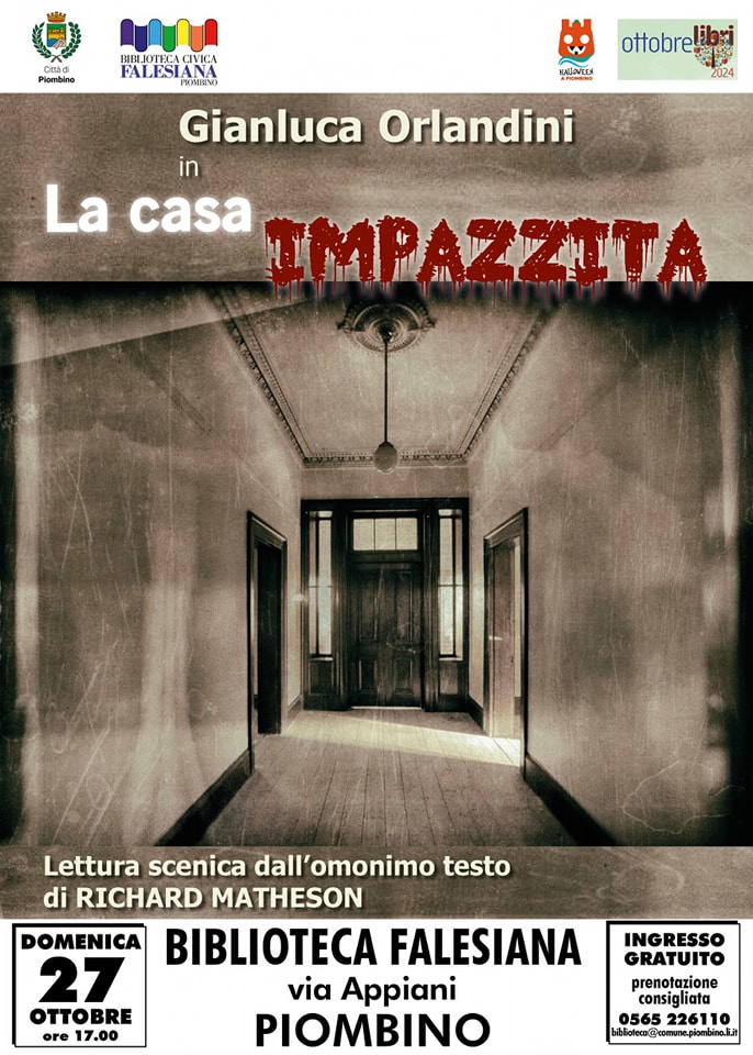 Il prossimo incontro proporrà una “Halloween letteraria”: un appuntamento con il giallo, con protagonista l’attore Gianluca Orlandini che interpreterà una lettura scenica tratta da La casa impazzita del maestro americano del mistery, Richard Matheson.