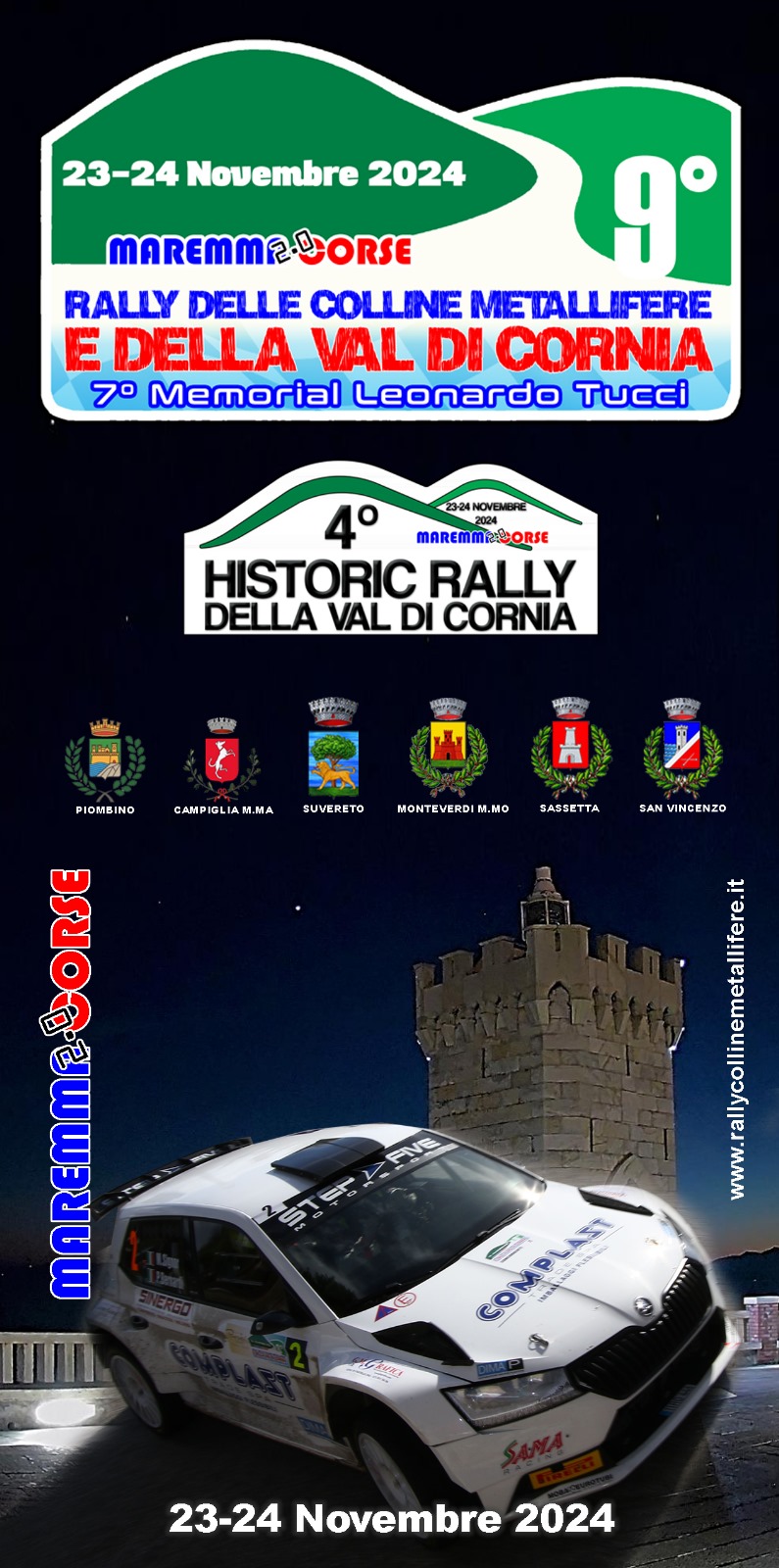 Venerdì 22 e sabato 23 novembre si svolgerà il 9° Rally delle Colline Metallifere e Val di Cornia - 7° Memorial Leonardo Tucci. La gara, organizzata da MaremmaCorse 2.0, si terrà con alcune modifiche al percorso dopo un intenso lavoro per individuare la formula adeguata alla manifestazione che, spostata di quasi un mese, rischiava di incidere sul fine settimana di shopping pre-natalizio. Grazie ad un’attenta revisione da parte degli uffici comunali, si è potuto confermare il tradizionale arrivo in centro ma, anziché stazionare in Corso Italia, le auto transiteranno brevemente per posizionarsi in piazza Verdi, permettendo il normale transito dei pedoni, in modo da conciliare le esigenze della competizione con quelle della città.
