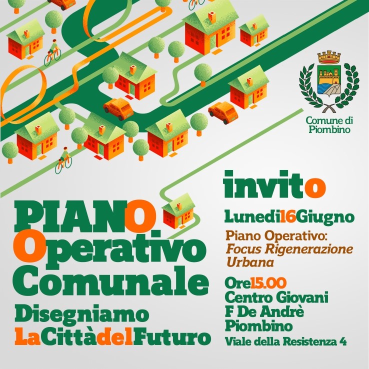 Il seminario, dal titolo "Piano Operativo: Focus Rigenerazione Urbana", si terrà lunedì 16 giugno alle ore 15 presso il Centro Giovani “Fabrizio De André”, in Viale della Resistenza 4, Piombino, ed è rivolto in particolare agli operatori del settore ma aperto a tutta la cittadinanza interessata.